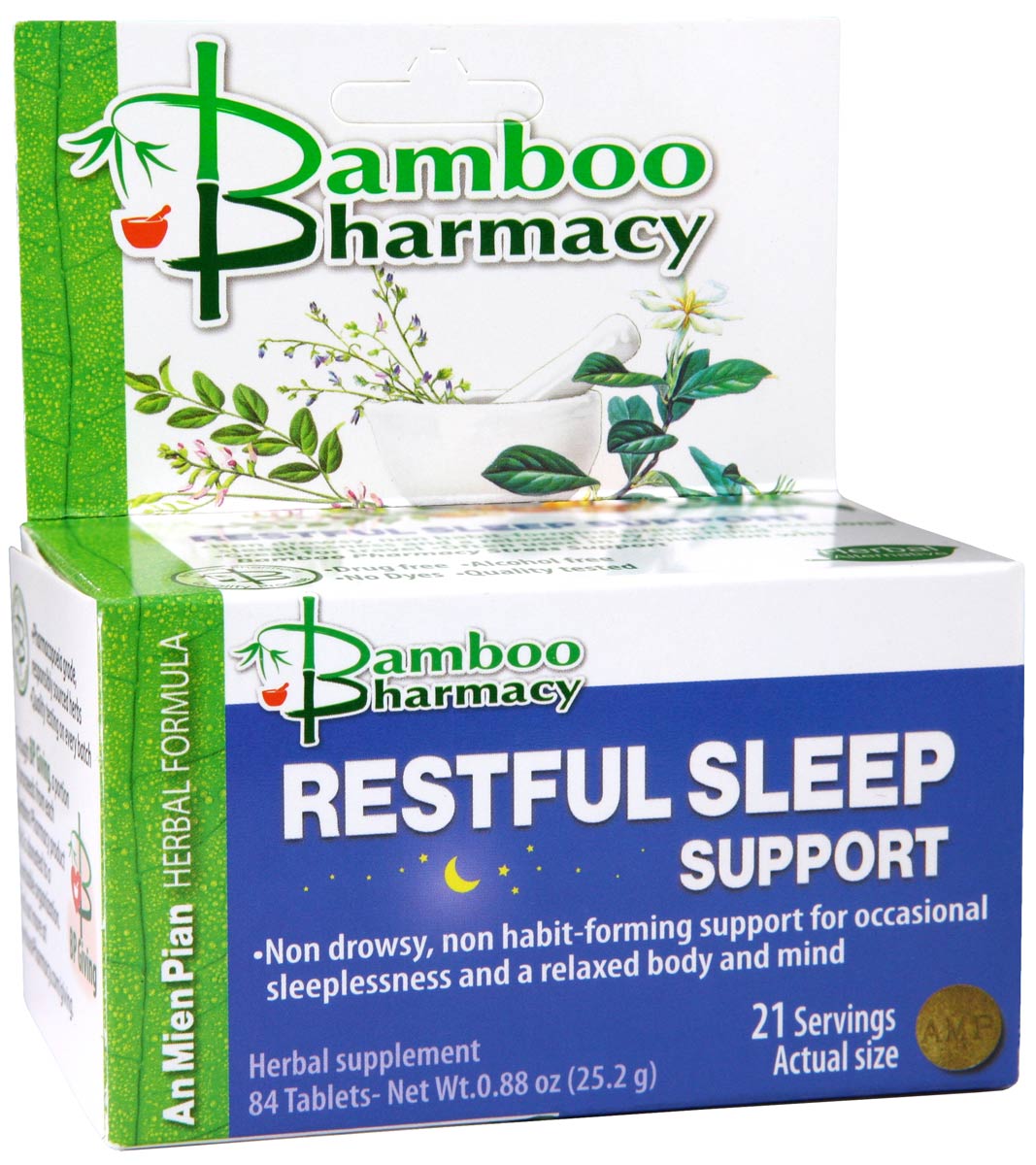 Designed to help relax your body and mind, Restful Sleep Support (based on the formula An Mien Pian) encourages a good night’s rest. This popular non-habit forming formula has traditionally been used to promote a restful and uninterrupted night’s sleep. Soothing and calming gardenia and adaptogen licorice are blended together with specially formulated Chinese herbs to create a peaceful state of mind.