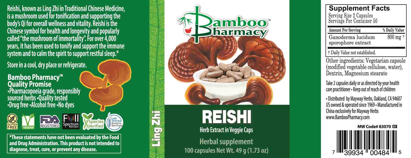 Bamboo Pharmacy™ Reishi Mushroom, also known as Ling Zhi in Traditional Chinese Medicine, is a mushroom used for tonification and supporting the body’s Qi for overall wellness and vitality. Reishi is the Chinese symbol for health and longevity and popularly called “the mushroom of immortality”. For over 4,000 years, it has been used to tonify and support the immune system and to calm the spirit to support restful sleep.*